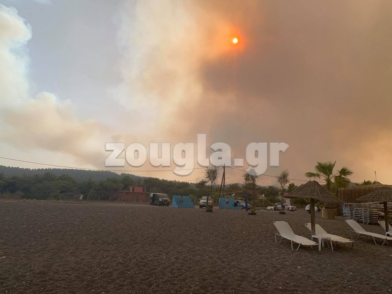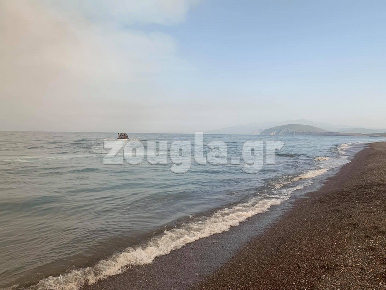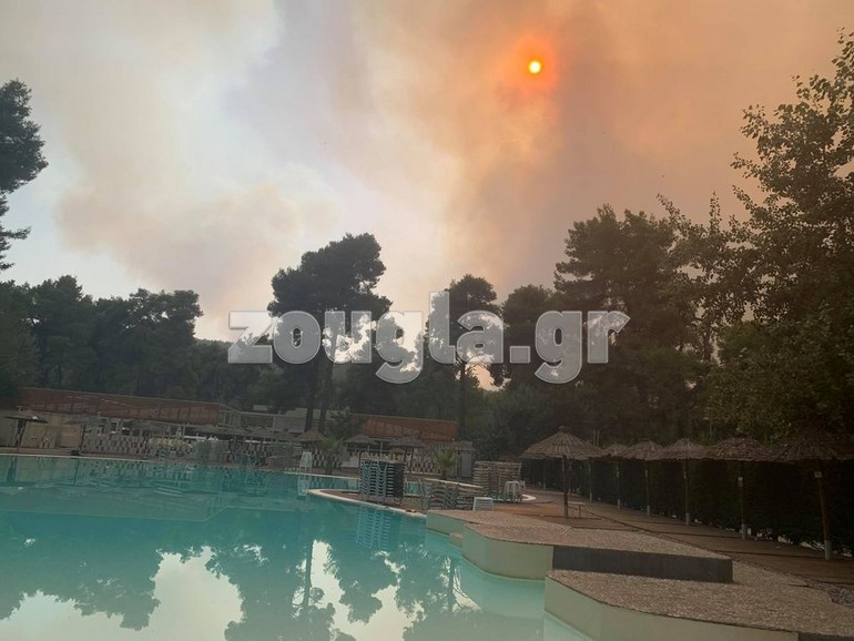 Άμεσος είναι ο κίνδυνος για τους κατοίκους της Αγίας Άννας, καθώς πριν από λίγο δόθηκε εντολή εκκένωσης του κάμπινγκ, με τους παραθεριστές να αποχωρούν δια θαλάσσης.