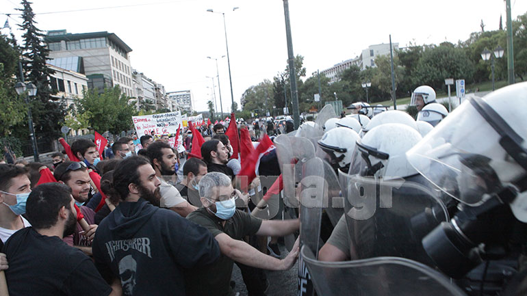 Λίγο μετά τις 19.00 σημειώθηκαν μικρής έντασης επεισόδια μεταξύ διαδηλωτών και αστυνομικών, όπως μπορείτε να δείτε στο παρακάτω βίντεο: