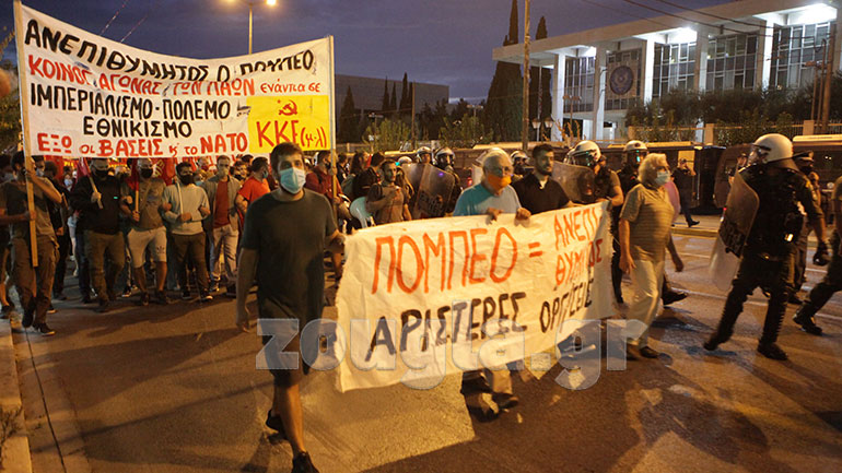 Συγκεκριμένα, με συνθήματα όπως «ανεπιθύμητος ο Πομπέο» και «οι λαοί δεν έχουν ανάγκη από “προστάτες”», μέλη αριστερών οργανώσεων συγκεντρώθηκαν αρχικά στο πάρκο Ελευθερίας το απόγευμα της Δευτέρας για να διαμαρτυρηθούν και στη συνέχεια κατευθύνθηκαν προς την αμερικανική πρεσβεία.