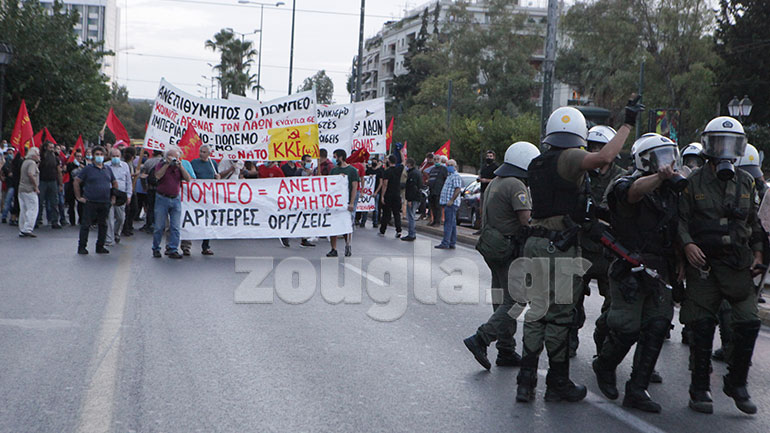Πορεία διαμαρτυρίας με αφορμή την επίσκεψη του Αμερικανού υπουργού Εξωτερικών, Μάικ Πομπέο, στην Ελλάδα πραγματοποιήθηκε το απόγευμα της Δευτέρας στο κέντρο της Αθήνας.