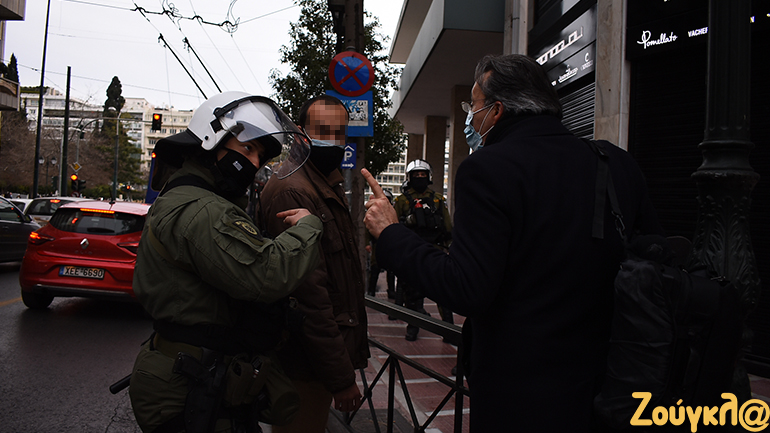 Ο κόσμος σκόρπισε περιμετρικά στα στενά και τις οδούς Σταδίου-Πανεπιστημίου, η αστυνομία έκανε φραγμό στη Σταδίου και οδήγησε έτσι τους συγκεντρωμένους στη Βουκουρεστίου όπου ήρθαν οι Αύρες της ΕΛ.ΑΣ. και, αφού έριξαν νερό στους διαδηλωτές, τους κυνήγησαν στα Προπύλαια με κατεύθυνση προς Ομόνοια, ρίχνοντας χημικά και προχωρώντας σε 10 συνολικά προσαγωγές, ενώ την επιχείρηση απώθησης συνέδραμε και η ομάδα ΔΡΑΣΗ.