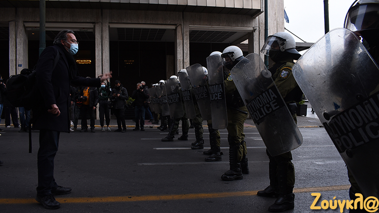 Οι ισχυρές δυνάμεις της αστυνομίας που βρίσκονται στο σημείο δεν επιτρέπουν στους συγκεντρωμένους να πλησιάσουν στο Σύνταγμα και, όπως θα δείτε στο παρακάτω βίντεο, ο δικηγόρος Θανάσης Καμπαγιάννης αντιτίθεται λέγοντας πως οι αστυνομικοί δρουν με παράνομο τρόπο.