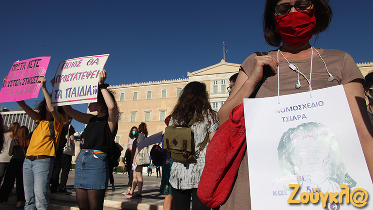 Συγκέντρωση διαμαρτυρίας για το νομοσχέδιο του υπουργείου Δικαιοσύνης που αφορά στις αλλαγές στο οικογενειακό δίκαιο πραγματοποιήθηκε το απόγευμα της Τρίτης στο Σύνταγμα.