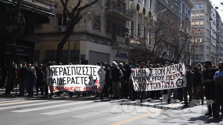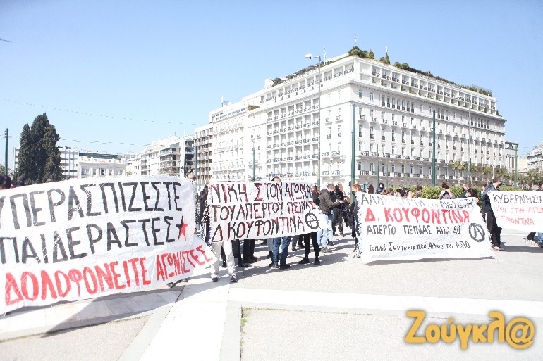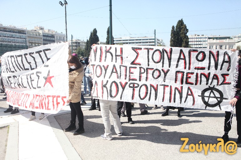 Συγκέντρωση πραγματοποιήθηκε από μέλη αντιεξουσιαστικών οργανώσεων στο Σύνταγμα, ως ένδειξη συμπαράστασης προς τον Δημήτρη Κουφοντίνα. Οι διαδηλωτές που κάλυψαν την συγκέντρωση αλληλεγγύης για τον απεργό πείνας, κρατούσαν στα χέρια τους πανό με συνθήματα για να διαμαρτυρηθούν, ενώ μπροστά τους παρατάχθηκαν αστυνομικές δυνάμεις. Μέλη των οργανώσεων μετακινήθηκαν στην Πατησίων συνεχίζοντας την πορεία, ενώ η Πανεπιστημίου είχε κλείσει.