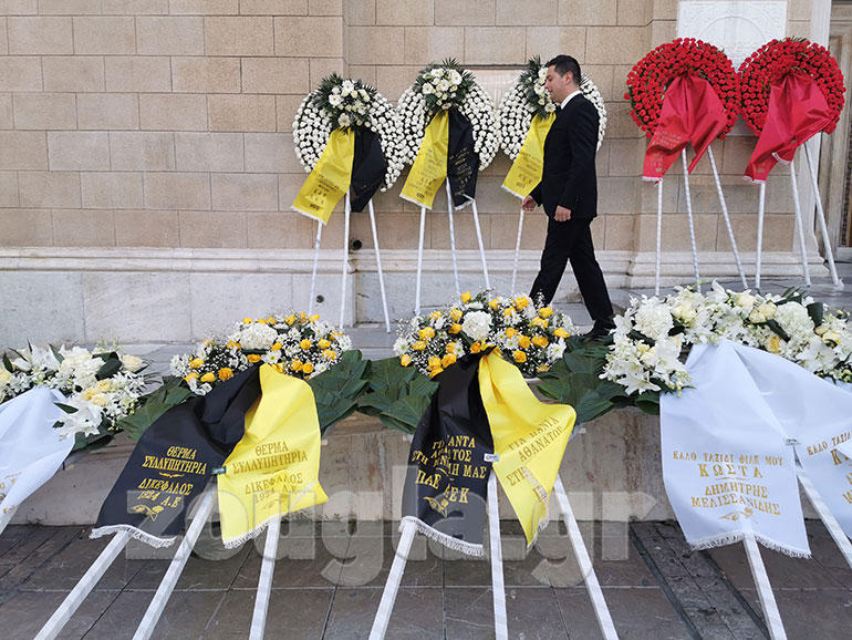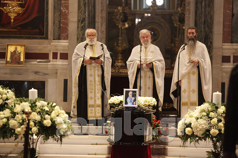 Στις 09:00 το πρωί η σορός του μεγάλου ηθοποιού μεταφέρθηκε από το παρεκκλήσι του Αγίου Ελευθερίου, όπου ετέθη στη διάρκεια της χθεσινής ημέρας σε λαϊκό προσκύνημα, στον ιερό ναό της Μητρόπολης Αθηνών. Στις 11:00 έγινε η νεκρώσιμος ακολουθία παρουσία της οικογένειας και ανθρώπων από το φιλικό και επαγγελματικό περιβάλλον του.