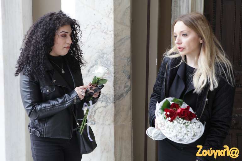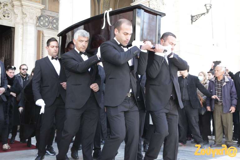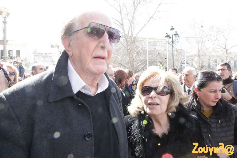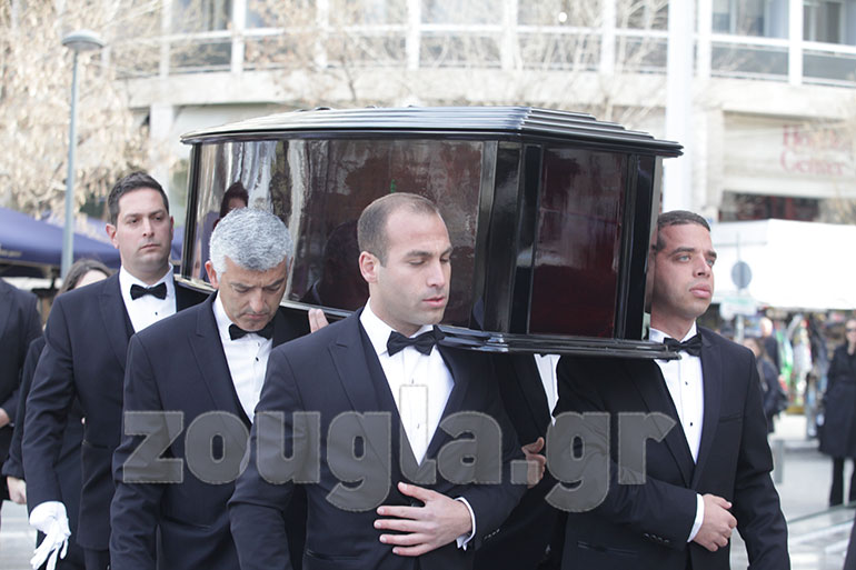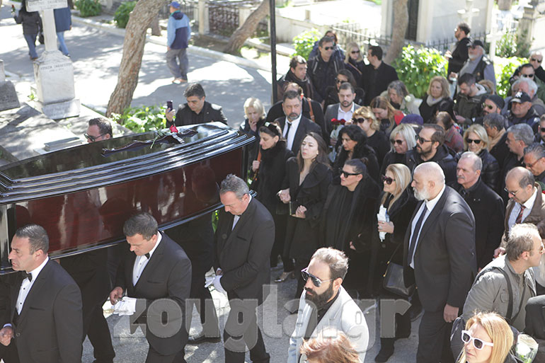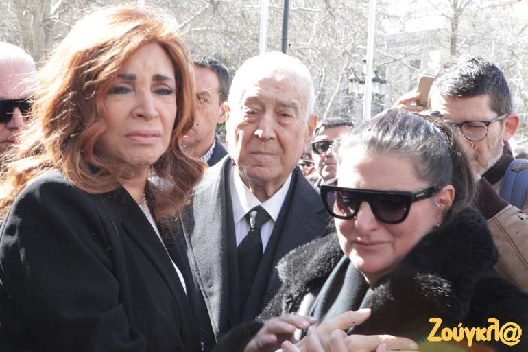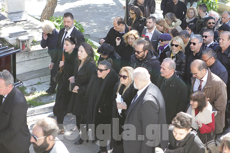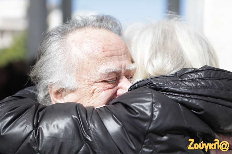 Με τη θλίψη ζωγραφισμένη στα πρόσωπα και με δάκρυα στα μάτια η σύζυγος του μεγάλου ηθοποιού Αλίκη Κατσαβού και οι αγαπημένες του κόρες τον συνόδευσαν στην τελευταία του κατοικία.