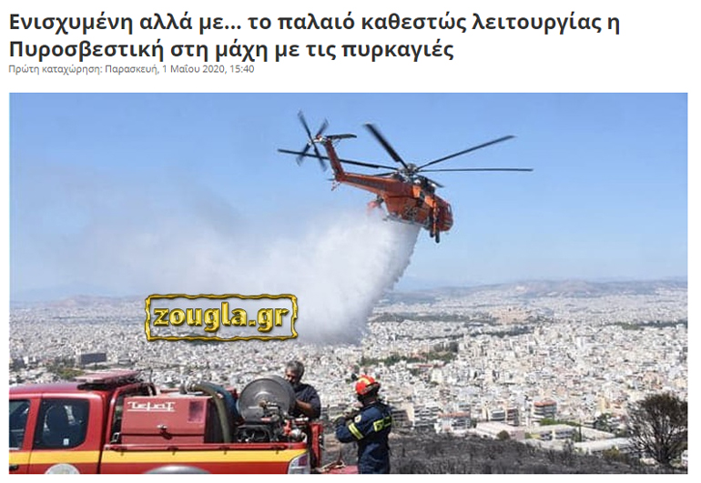 Με επιπλέον ελικόπτερα βαρέως τύπου, νέα πυροσβεστικά οχήματα και ενισχυμένο τον κρατικό μηχανισμό, ιδίως την Πυροσβεστική Υπηρεσία που είναι ο κύριος βραχίονας της Πολιτικής Προστασίας,σε μέσα και προσωπικό, ξεκίνησε χθες, Παρασκευή 1η Μαΐου, η αντιπυρική περίοδος 2020.