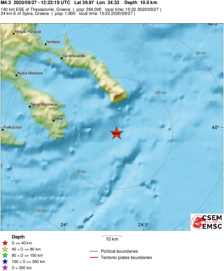 Έντονη σεισμική δραστηριότητα παρατηρείται σήμερα, Κυριακή, στον θαλάσσιο χώρο νότια της Χαλκιδικής.