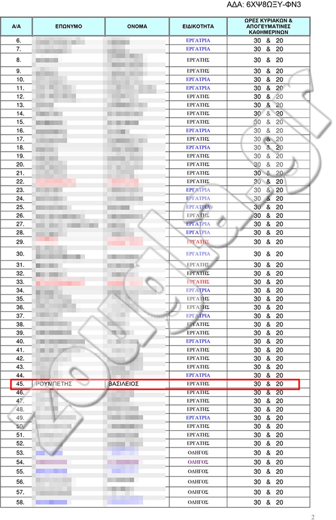 Δείτε τους πίνακες από την «Διαύγεια» που αφορούν τις προσλήψεις του Βασίλη Ρουμπέτη στο Δήμο Πειραιά: