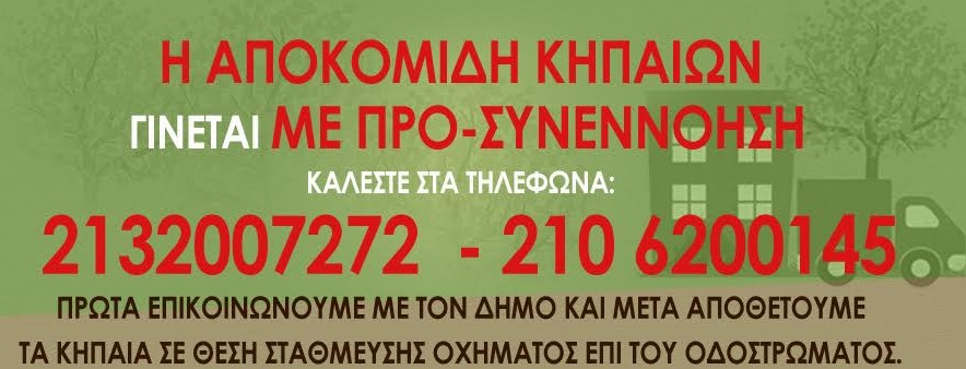 Επίσης έστειλε στο zougla.gr συγκεκριμένα τηλέφωνα όπου οι πολίτες μπορούν να επικοινωνούν με τον Δήμο προκειμένου να προγραμματίζεται το πότε θα περάσουν τα συνεργεία για να μαζέψουν τα κηπαία απορρίμματα: