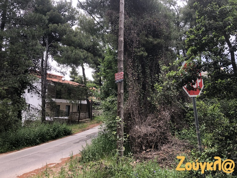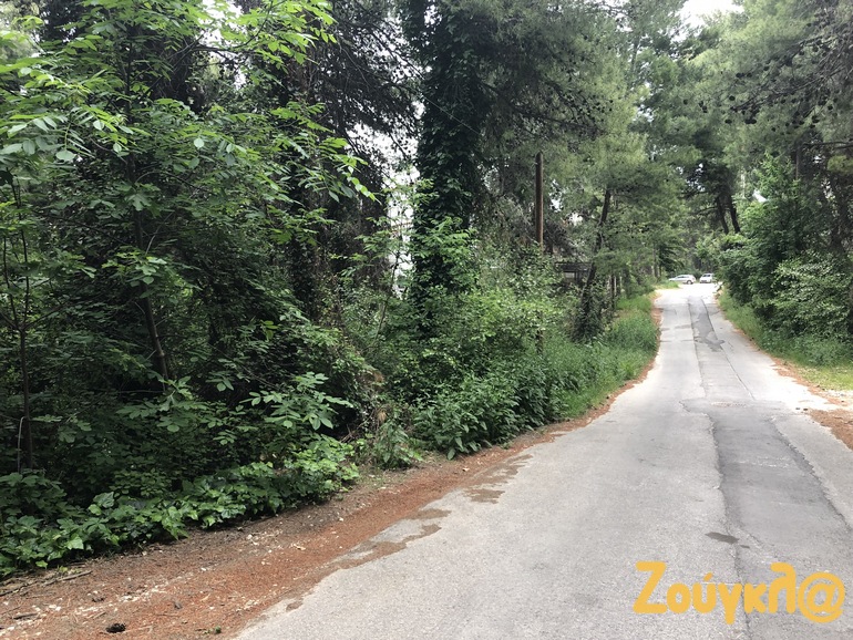 Οδός Ευμένους, Διόνυσος. Κανένας καθαρισμός της κατάφυτης έκτασης, ακριβώς δίπλα σε κατοικίες, σκουπίδια μέσα στο πράσινο, και πυλώνες της ΔΕΗ με τα καλώδια να περνάνε ανάμεσα από τα κλαδιά…