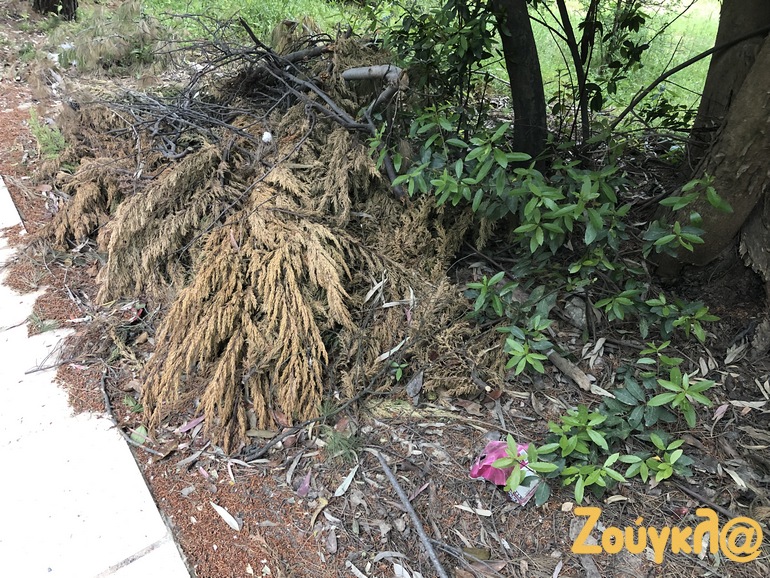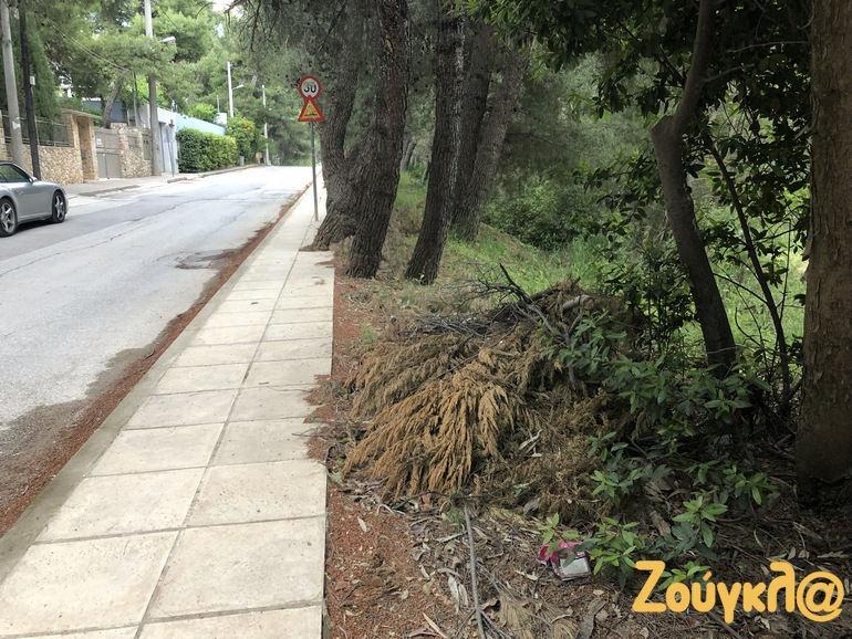 Η κάμερα του zougla.gr κινήθηκε ενδεικτικά στην περιοχή του Διονύσου, στη βόρεια Αττική, όπου δυστυχώς σε ορισμένα σημεία καταγράψαμε εικόνες από το τι ακριβώς… δεν πρέπει να συμβαίνει, ώστε να μην δημιουργούνται οι συνθήκες για την πρόκληση και επέκταση μιας πυρκαγιάς. Κλαδιά και χόρτα πεταμένα δίπλα στον δρόμο, δίπλα στο δάσος και δίπλα σε κατοικίες, ελαττωματικές κολώνες της ΔΕΗ με τα καλώδια να περνάνε στην κυριολεξία μέσα από τα κλαδιά των δέντρων (με όποιον κίνδυνο συνεπάγεται αυτό) και, επίσης, κατάφυτα σημεία δίπλα σε κατοικίες που δείχνουν να μην έχουν καθαριστεί ποτέ, όπως θα έπρεπε.