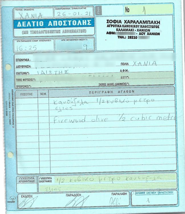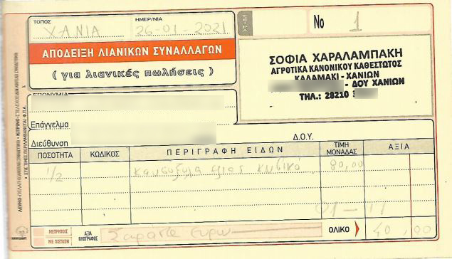 Τους έδειξα τα χαρτιά μου, δηλαδή το Δελτίο Αποστολής και την Απόδειξη Λιανικών Συναλλαγών (για λιανικές πωλήσεις). Είμαι Αγρότης Κανονικού Καθεστώτος.