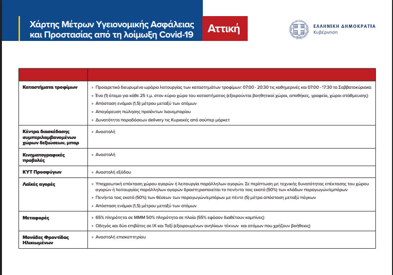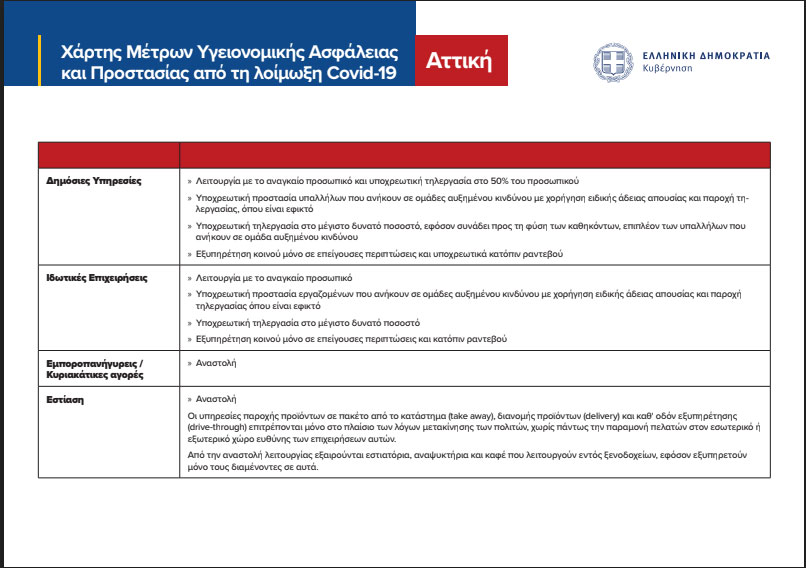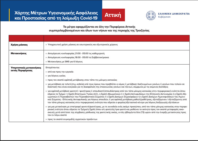 Η Περιφερειακή Ενότητα της Αττικής, συμπεριλαμβανομένων και όλων των νήσων και της περιοχής της Τροιζηνίας, μπαίνει από αύριο σε καθεστώς lockdown και ως εκ τούτου ισχύουν τα εξής: