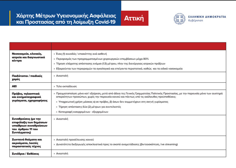Όσον αφορά στη λειτουργία των νοσοκομείων, των κλινικών, των ιατρείων και των διαγνωστικών κέντρων, συνεχίζουν να ισχύουν τα εξής: