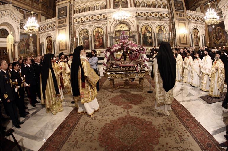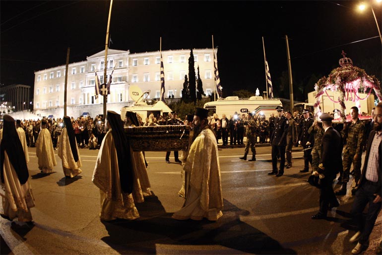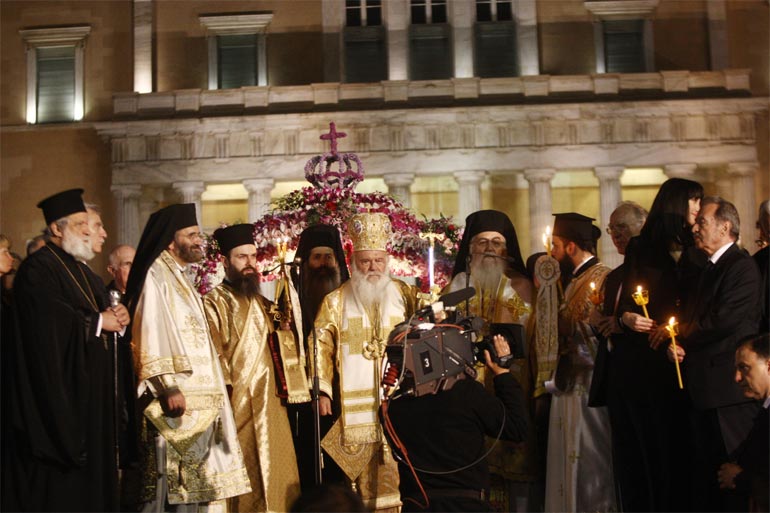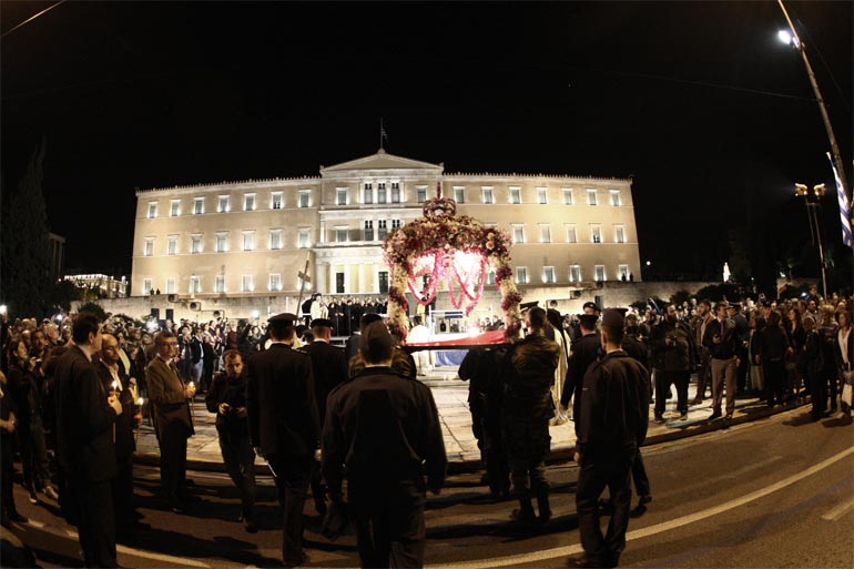 «Πάσχα σημαίνει πέρασμα, διάβαση, και αυτό το πέρασμα έχει βαθιές τις ρίζες. Ένας λαός ταλαιπωρημένος στην ξενιτιά και στην εξορία, κάτω από πολλές ταλαιπωρίες, βάσανα και δυστυχία ζητάει τη διάβαση, ζητάει το πέρασμα», τόνισε ο Αρχιεπίσκοπος Ιερώνυμος, όταν ο Επιτάφιος του Καθεδρικού Ναού Αθηνών κατά την περιφορά του στάθμευσε στην Πλατεία Συντάγματος, μπροστά στο Μνημείο του Αγνώστου Στρατιώτη, για την τέλεση δέησης.