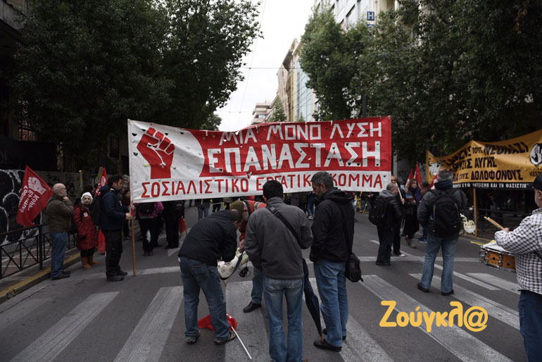 Παράλληλα ξεκίνησε και η πορεία του ΚΚΕ, το οποίο πραγματοποίησε συγκέντρωση στην Ομόνοια.
