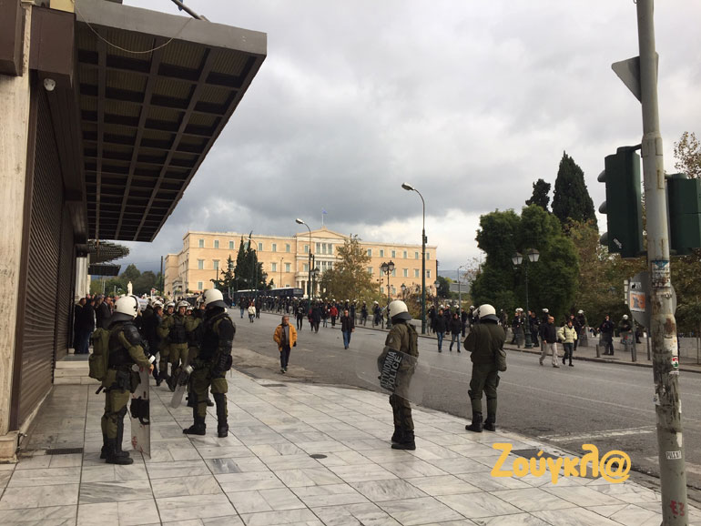 Ισχυρότατες δυνάμεις με διμοιρίες των ΜΑΤ όπως κάθε χρόνο έχουν στήσει φράγμα μπροστά από την Αμερικανική Πρεσβεία με μία σειρά από κλούβες. Ευρεία επιτήρηση του κέντρου της Αθήνας πραγματοποιείται μέσω συνεχών πτήσεων drone της ΕΛ.ΑΣ. και του ελικοπτέρου της αστυνομίας. Οι προσβάσεις προς το κέντρο της πόλης είναι κλειστές κατά μήκος του άξονα Πολυτεχνείο – Αμπελόκηποι αλλά και στις παράπλευρες κάθετες και οριζόντιες οδούς όπου έχει απαγορευθεί και η στάθμευση.