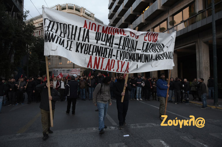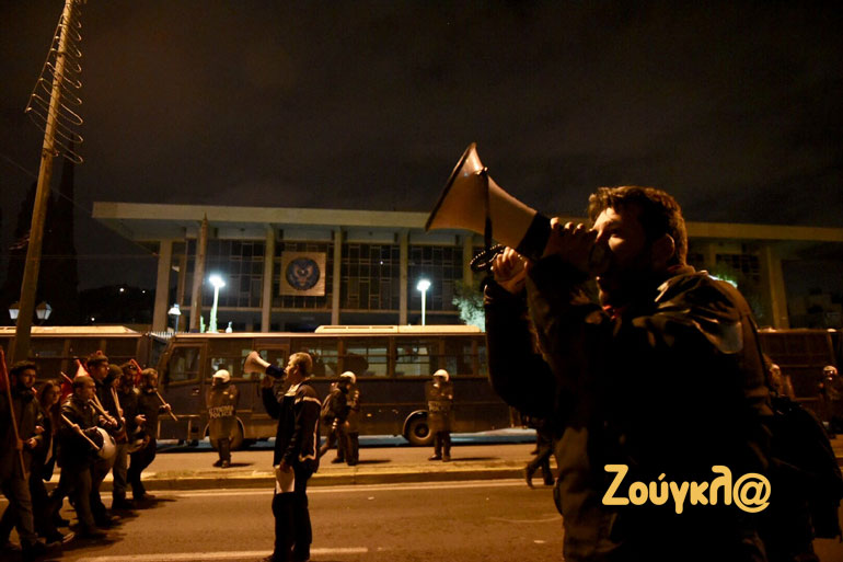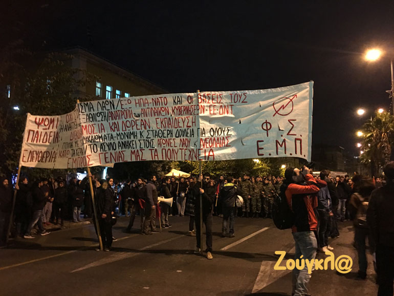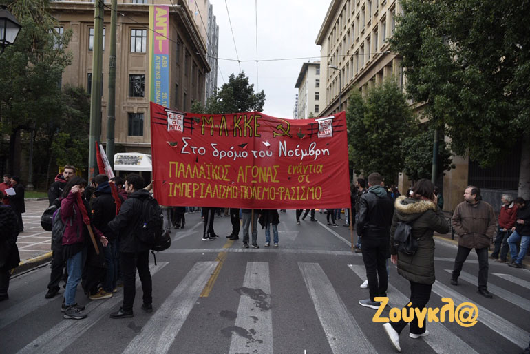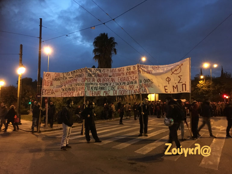 Ολοκληρώθηκε η μαζική διαδήλωση για τα 45 χρόνια από την εξέγερση του Πολυτεχνείου. Φοιτητικοί σύλλογοι, φορείς, κόμματα κι οργανώσεις της Αριστεράς, σωματεία και συλλογικότητες του αντιεξουσιαστικού χώρου συγκεντρώθηκαν στην Πλατεία Κλαυθμώνος και κατευθύνθηκαν προς την αμερικάνικη πρεσβεία.