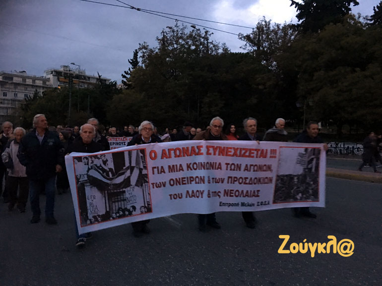 Νωρίτερα, όταν έκλεισαν οι πύλες του Πολυτεχνείου, φοιτητικοί σύλλογοι πραγματοποίησαν προσύγκεντρωση και με πορεία κατευθύνθηκαν στην πλατεία Κλαυθμώνος περιμένοντας να ξεκινήσει ο κύριος όγκος της διαδήλωσης. Του συλλαλητηρίου προπορεύτηκε ο σύνδεσμος φυλακισθέντων εξορισθέντων αντιστασιακών 1967-1974.