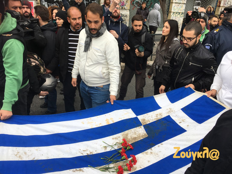 Ξεχωριστή πορεία πραγματοποίησε το «μπλοκ» με την αιματοβαμμένη σημαία του Πολυτεχνείου, το οποίο έφθασε μπροστά από την πρεσβεία των ΗΠΑ στις 16.30. Μόλις έφτασαν οι διαδηλωτές έψαλαν τον εθνικό ύμνο, ύψωσαν τα χέρια τους πάνω από τη σημαία, τη δίπλωσαν και διαλύθηκαν.
