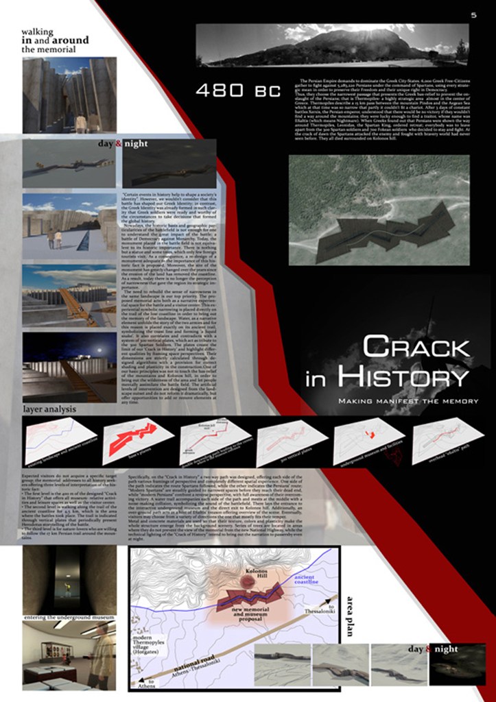 Η συμμετοχή τους αυτή με τίτλο ” Mία ρωγμή στην Iστορία ” διακρίθηκε στις 19 καλύτερες λύσεις (σε σύνολο 92 προτάσεων), καταλαμβάνοντας τη 10η θέση και είναι η μοναδική ελληνική πρόταση που πέρασε στην τελική φάση του διαγωνισμού.