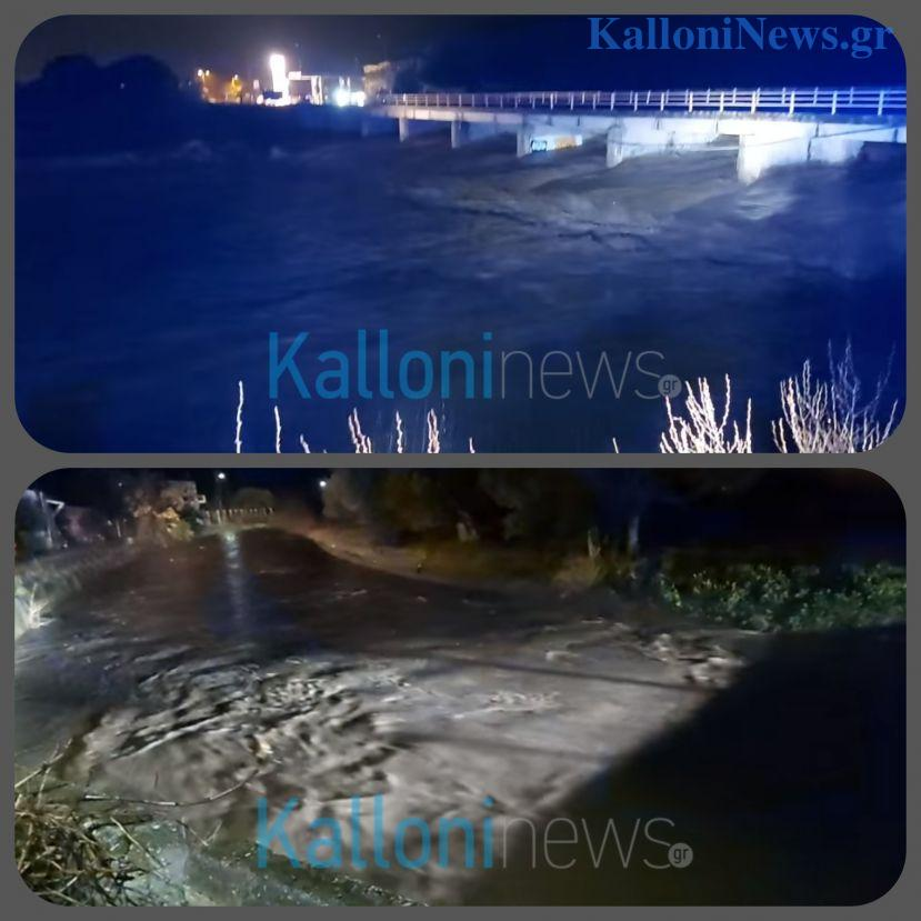 Το ποτάμι που διασχίζει την Καλλονή έχει φουσκώσει και κινδυνεύει να πλημμυρίσει η κωμόπολη. Επίσης η εκβολή άλλου ποταμιού στη Σκάλα Καλλονής έσπασε με αποτέλεσμα να πλημμυρίσει όλη η γύρω περιοχή.