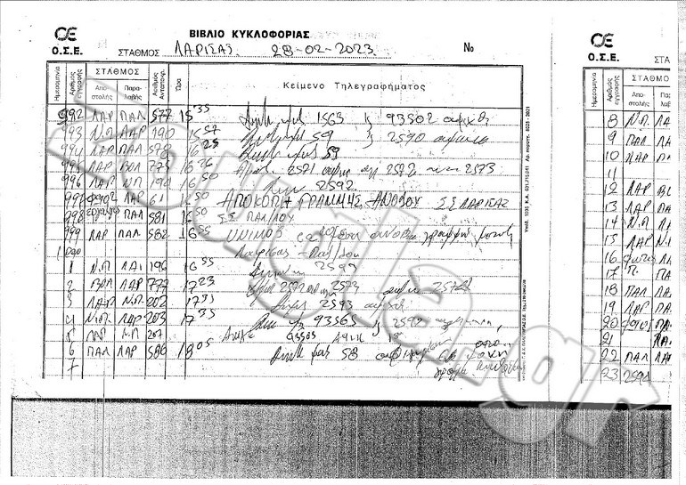 Φύλλο και φτερό έκαναν οι ανακριτικές αρχές όλα τα έγγραφα που έχουν κατασχεθεί από το σταθμαρχείο της Λάρισας, όχι μόνο της 28ης Φεβρουαρίου, αλλά και των προηγούμενων μηνών.
