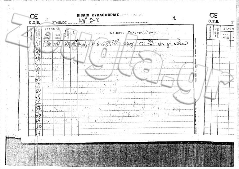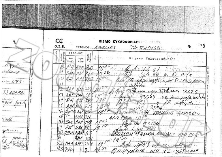 Το ντοκουμέντο που αποκαλύπτει το zougla.gr από το συγκεκριμένο βιβλίο αποδεικνύει, ότι ενώ οι άλλοι σταθμάρχες γράφουν τις γραμμές, εκείνος τις… ξεχνά, οδηγώντας έτσι στο θάνατο 57 ανθρώπους. Ξέχασε να εκφωνήσει, αλλά και να γράψει, ότι το τρένο έπρεπε να κινείται σε διπλή γραμμή ανόδου.