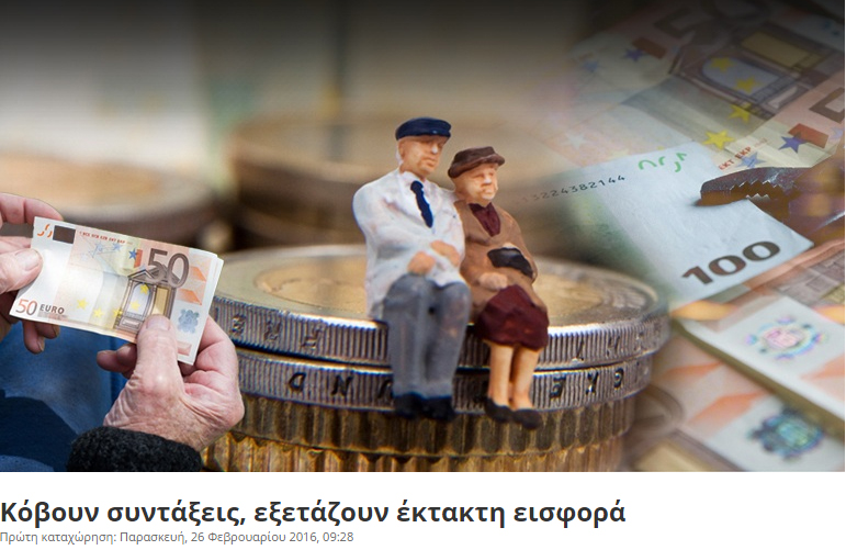 Οι θεσμοί θέτουν ως στόχο στο συνταξιοδοτικό για το 2016 την εξοικονόμηση πόρων που αντιστοιχούν στο 1% του ΑΕΠ, ενώ έχουν εγείρει ενστάσεις σχετικά με την αύξηση της εργοδοτικής εισφοράς -μέτρο που βρίσκεται στα προτεινόμενα του σχεδίου Κατρούγκαλου για την επίτευξη του συγκεκριμένου στόχου.