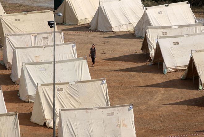 14:00 Σειρήνες και σταδιακή προσέλευση στον καταυλισμό (Φράγμα της Θέρμης, είσοδος περιβαλλοντικού πάρκου) μέχρι τις 21:00 (Υποδοχή, καταγραφή, κατανομή πληθυσμού σε σκηνές).
