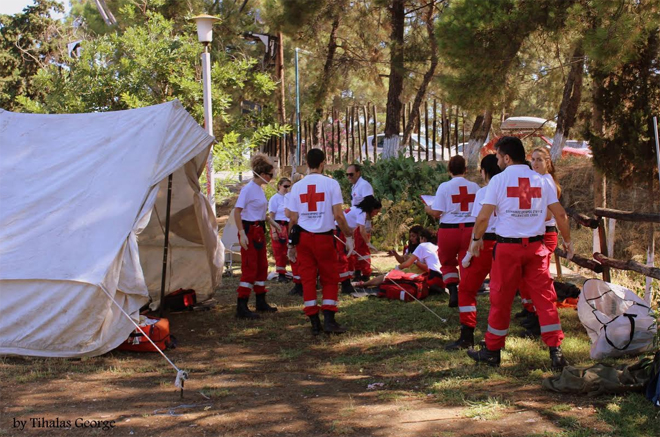 Ακολούθως κατέφθασε στη Βάση Ναυτοπροσκόπων η ομάδα Αντιμετώπισης και Μεταφοράς, που ανέλαβε την μεταφορά όλων των περιστατικών στον πρόχειρο σταθμό πρώτων βοηθειών, που είχε στηθεί. Εκεί παρασχέθηκαν οι πρώτες βοήθειες και προετοιμάστηκαν οι τραυματίες για τη διακομιδή τους στα εφημερεύοντα νοσοκομεία της πόλης. Παράλληλα δραστηριοποιήθηκαν και η ομάδα Διοικητικής Μέριμνας που κάλυψε τις ανάγκες των διασωστών σε τροφή και νερό, η ομάδα Τηλεπικοινωνιών, φρόντισε για την επικοινωνία μεταξύ των ομάδων, η ομάδα Υλικών εξασφάλισε των μεταφορά των απαραίτητων υλικών στο χώρο. Τέλος, η ομάδα Τύπου ενημέρωσε τους συγγενείς των θυμάτων, καθώς και τους εκπροσώπους των ΜΜΕ, ενώ ομάδα εθελοντών φρόντισε την μεταμφίεση και το μακιγιάζ των θυμάτων.
