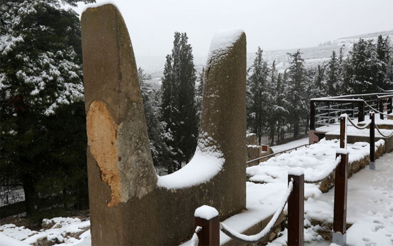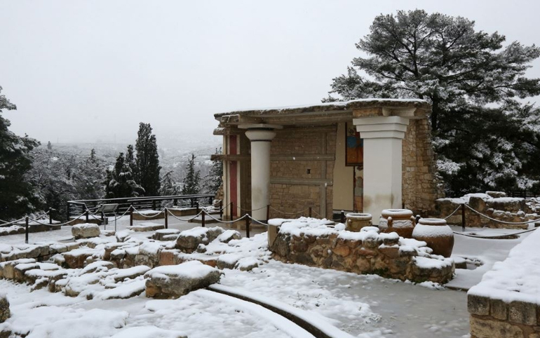 Χιόνι έχει καλύψει τις αρχαιότητες στην Κνωσό. Οι επισκέπτες του αρχαιολογικού χώρου αντίκρισαν το πρωί της Κυριακής μοναδικές εικόνες…