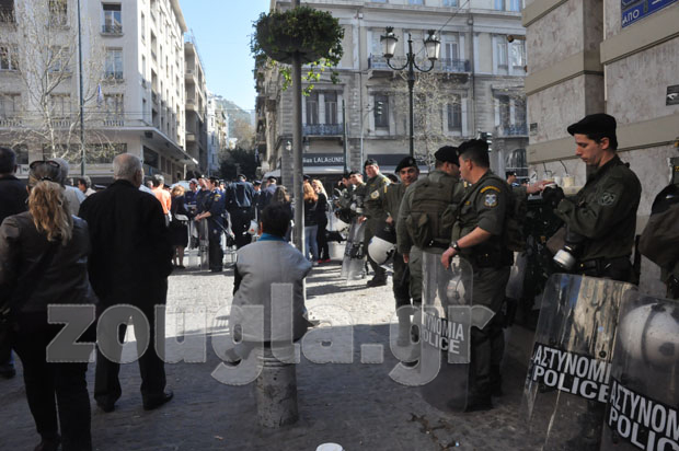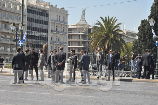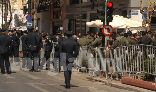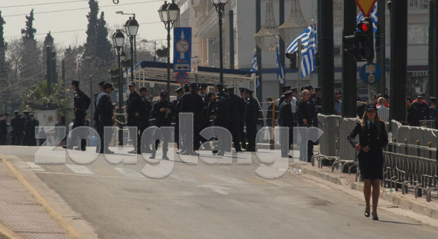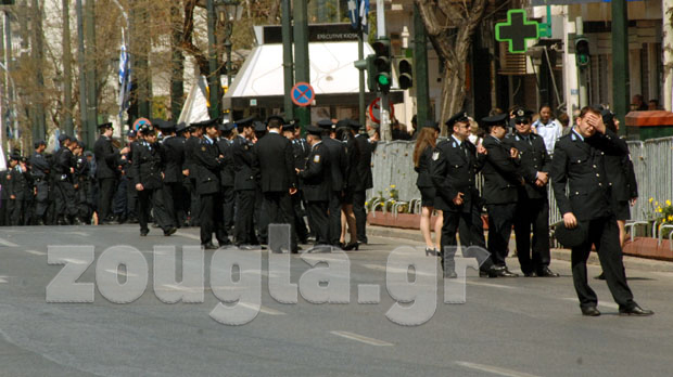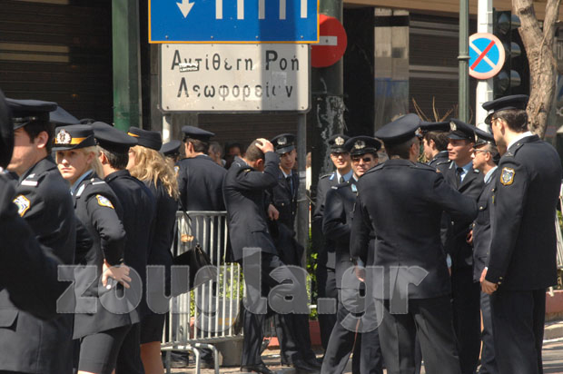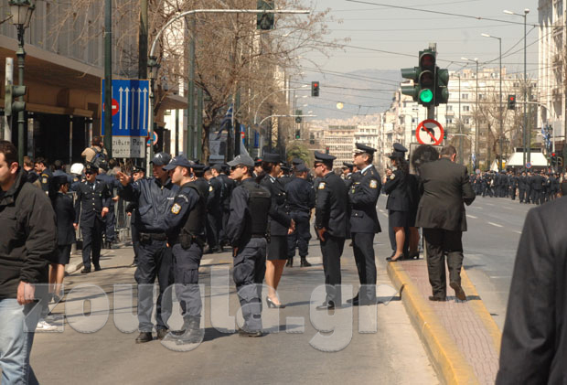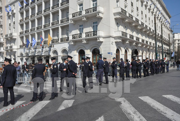 Η αστυνομία έλαβε δρακτόντεια μέτρα ασφαλείας, προκειμένου να μην δημιουργηθούν παρατράγουδα, αποκλείοντας την ευρύτερη περιοχή του Συντάγματος με σιδερένια κιγκλιδώματα και ισχυρές δυνάμεις των ΜΑΤ.