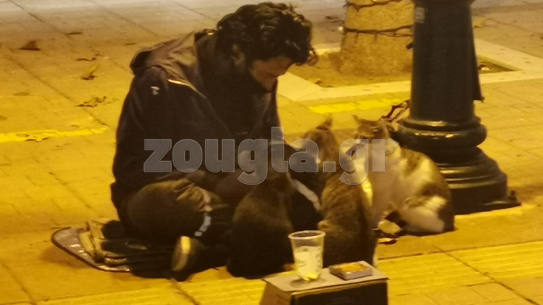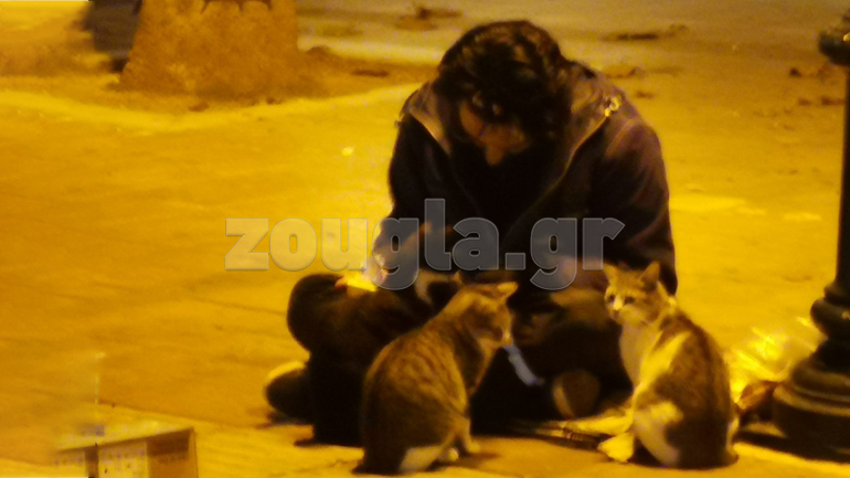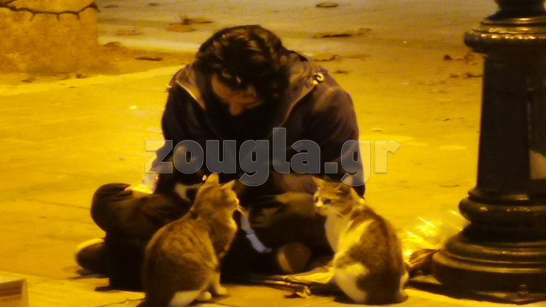 Ο άνθρωπος αυτός, παρά τις αντιξοότητες και τη φτώχεια, ειδικά σε μία περίοδο σαν και αυτήν που διανύουμε, με οικονομική αβεβαιότητα παντού και την πανδημία να «καλπάζει», ταΐζει τις γάτες, μοιράζεται δηλαδή το υστέρημά του μαζί τους, δείχνοντας ανθρωπιά και πραγματική αλληλεγγύη απέναντι στα ζώα. Το στιγμιότυπο απαθανατίστηκε σε κεντρική οδό της Κηφισιάς το βράδυ της Δευτέρας.