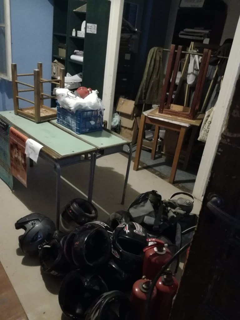 Η κυκλοφορία στον δρόμο αποκλείστηκε. Οι αστυνομικοί μπήκαν εντός των κτηρίων και, σύμφωνα με πληροφορίες από αστυνομικές πηγές, δεν εντοπίστηκαν άτομα στον χώρο αλλά βρέθηκαν διάφορα αντικείμενα, όπως κράνη, πυροσβεστήρες και κοντάρια.