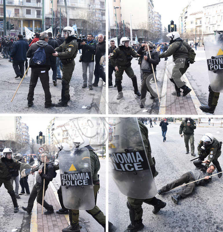 Καρέ-καρέ κατέγραψε η κάμερα του zougla.gr τη στιγμή που αστυνομικοί σέρνουν έναν αγρότη στον δρόμο κατά τη διάρκεια των βίαιων επεισοδίων στην πλατεία Βάθη.