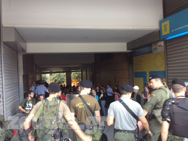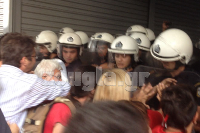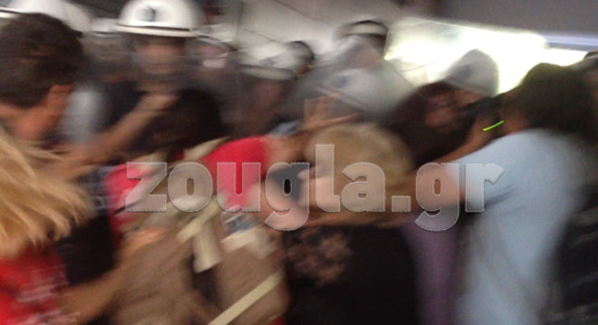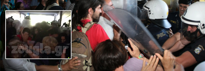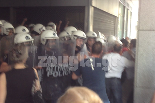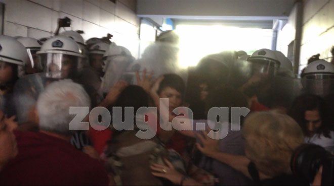 Νωρίς το απόγευμα της ίδιας ημέρας σημειώθηκε επέμβαση των ΜΑΤ, που με τη χρήση των ασπίδων τους και των κλομπ απώθησαν τις διαμαρτυρόμενες καθαρίστριες από την είσοδο του ΥΠΟΙΚ.