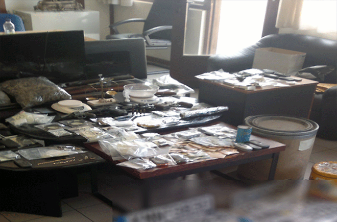 Στο πλαίσιο των αστυνομικών επιχειρήσεων, πραγματοποιήθηκαν περισσότερες από 30 έρευνες, στις οποίες βρέθηκαν και κατασχέθηκαν 1.210 γραμμάρια ακατέργαστη κάνναβη, 4,6 γραμμάρια κοκαΐνη, τρία περίστροφα, τρία κυνηγετικά όπλα, αεροβόλο όπλο, στιλέτο, 17 φυσίγγια, 281 εκατοστά φιτίλι, 15.860 γραμμάρια πυρίτιδα, δύο πυροκροτητές, δύο φωτοβολίδες, το χρηματικό ποσό των 1.795 ευρώ, έξι ζυγαριές ακριβείας, 31 κινητά τηλέφωνα, πέντε οχήματα, μία μοτοσικλέτα, δύο φορητοί ηλεκτρονικοί υπολογιστές και μία τηλεόραση.