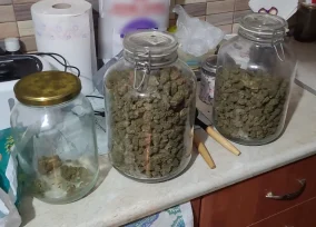 - -822- γραμμ. αποξηραμένων φύλλων κάνναβης σε γυάλινα δοχεία,