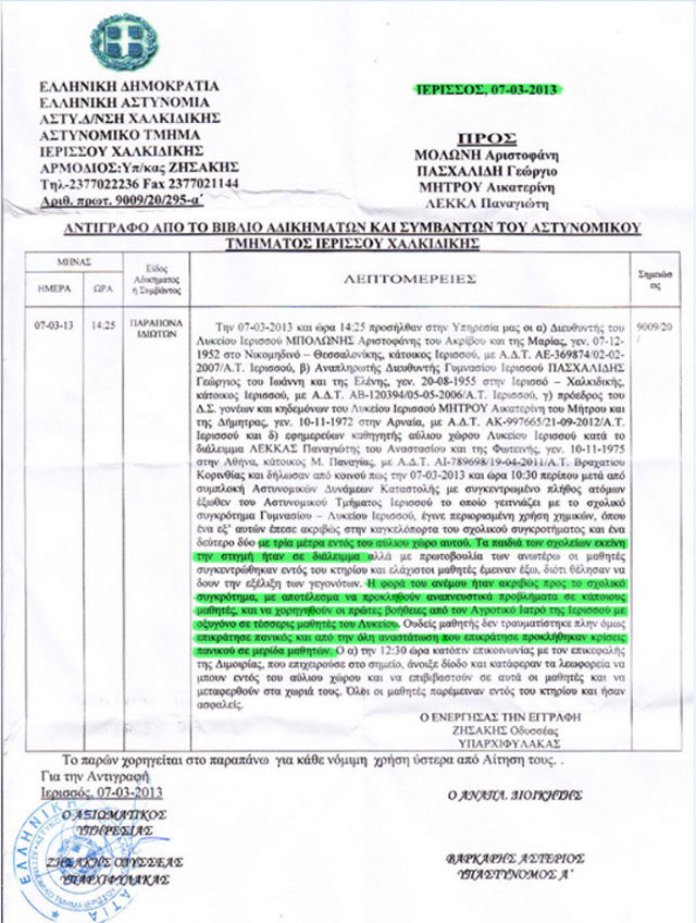 Το παρακάτω δελτίο συμβάντων δεν το συνέταξε κανένας «αντιεξουσιαστής» ή άλλος… «εχθρός της εννόμου τάξεως», αλλά το ίδιο το Αστυνομικό Τμήμα Ιερισσού.