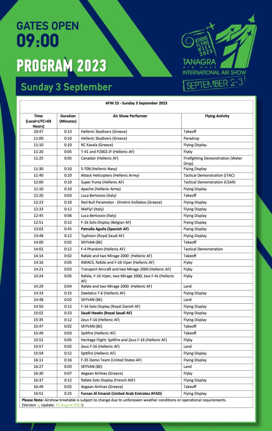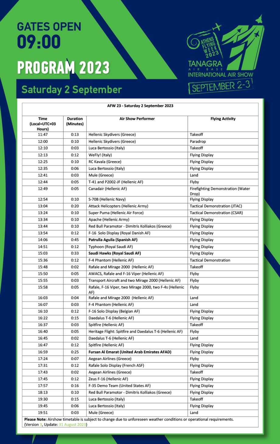 Athens Flying Week 2023 – 2 & 3 Σεπτεμβρίου στην Αεροπορική Βάση της Τανάγρας!
