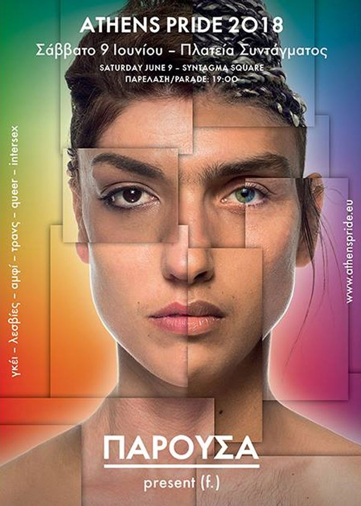 Η αφίσα του Athens Pride είναι ένα κολάζ διαφορετικών προσώπων που σχηματίζουν ένα και πολυμορφικό, προβάλλοντας πραγματικότητες που βιώνουν LGBTQI άτομα στην Ελλάδα.