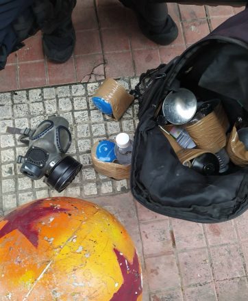 Ακολούθως εντοπίστηκαν και συνελήφθησαν άλλα δύο άτομα στην οδό Ιουλιανού τα οποία είχαν στην κατοχή τους 14 μολότοφ.