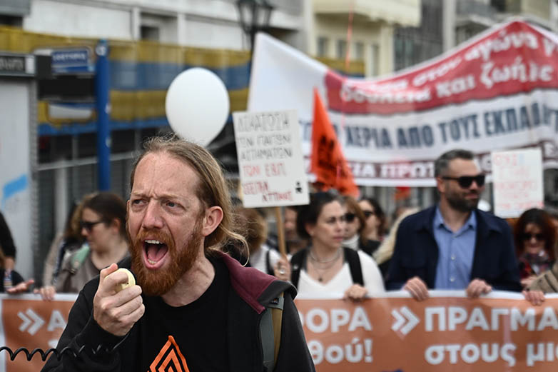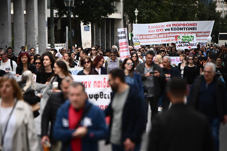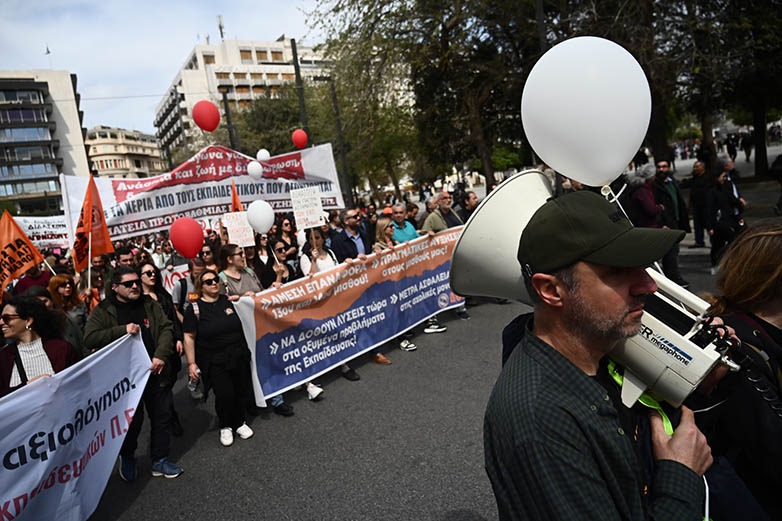 Πλήθος κόσμου συμμετέχει στο πανεκπαιδευτικό συλλαλητήριο που πραγματοποιείται στο κέντρο της Αθήνας, σήμερα, Σάββατο 29 Μαρτίου, μετά το κάλεσμα που έκαναν ΔΟΕ και ΟΛΜΕ.