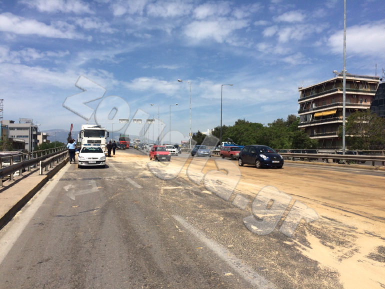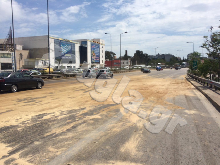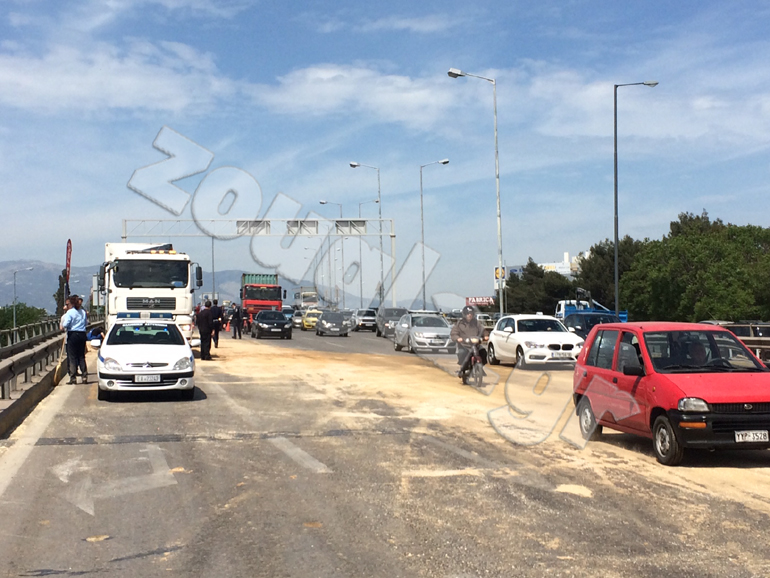 Συγκεκριμένα, το λάστιχο του οχήματος έσκασε, με αποτέλεσμα ο οδηγός να χάσει τον έλεγχο και το βυτιοφόρο να προσκρούσει στις προστατευτικές μπάρες. Από τη σφοδρή πρόσκρουση υπήρξε διαρροή πετρελαίου στο οδόστρωμα.
