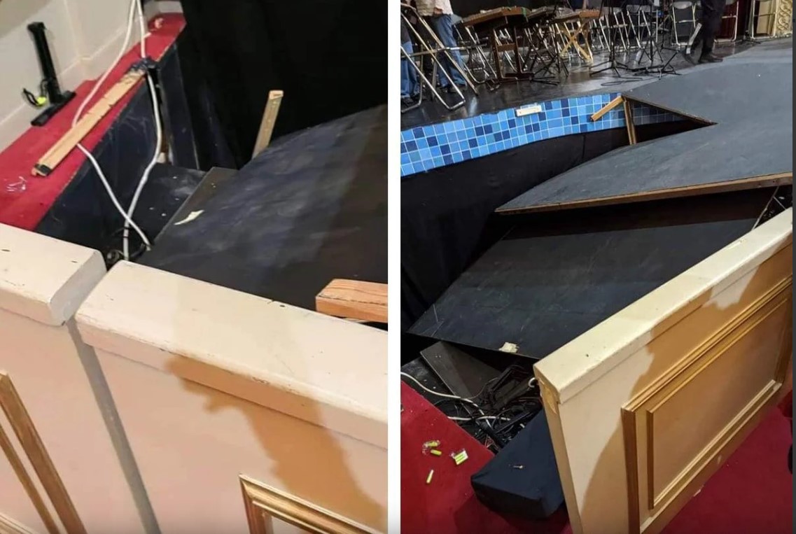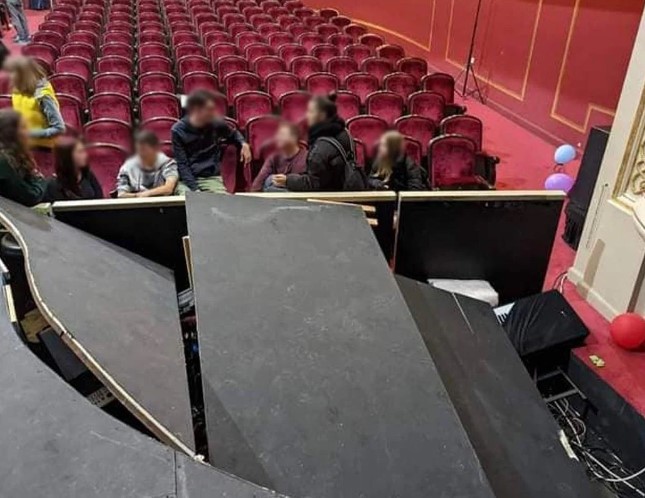 Μέρος της σκηνής στην κεντρική αίθουσα του Δημοτικού Θεάτρου Πειραιά κατέρρευσε το μεσημέρι της Δευτέρας (28/11), με αποτέλεσμα να τραυματιστούν μαθητές.
