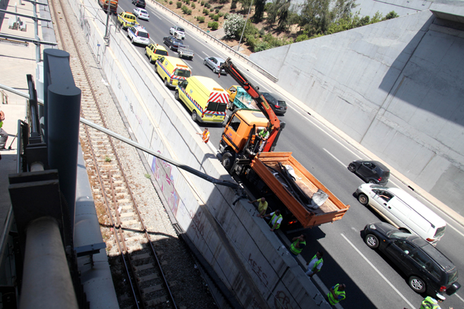 Τροχαίο ατύχημα σημειώθηκε σήμερα το μεσημέρι στην Αττική Οδό, στο ρεύμα προς Αθήνα, στο ύψος του «The Mall». Ένα βυτιοφόρο προσέκρουσε σε κολόνα, η οποία στη συνέχεια έπεσε στις σκάλες του Προαστιακού. Στο σημείο προκλήθηκαν προβλήματα στην κίνηση των οχημάτων. Τα δρομολόγια του Προαστιακού στο ύψος της Νερατζιώτισσας έχουν διακοπεί.