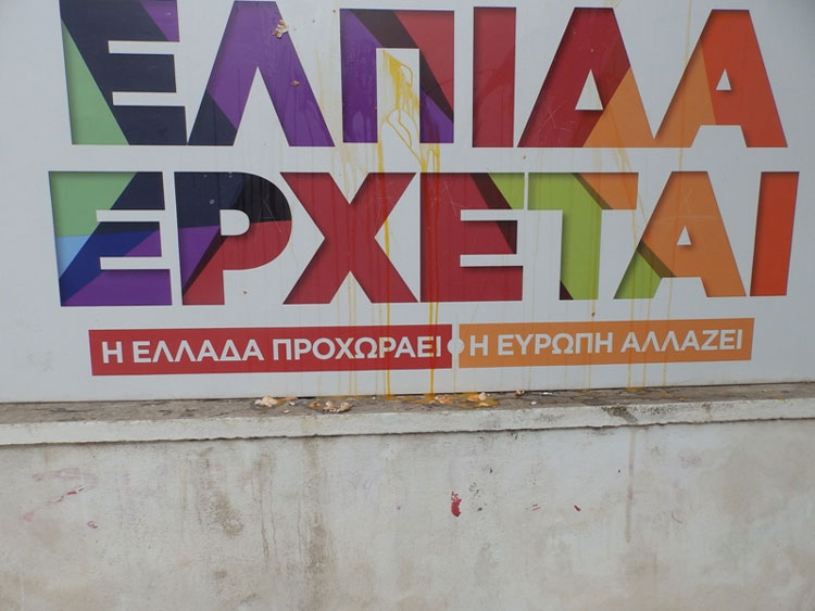 Νωρίς το πρωί άγνωστα άτομα πέταξαν αυγά στα γραφεία του κόμματος στην οδό Νεάρχου στα Χανιά.