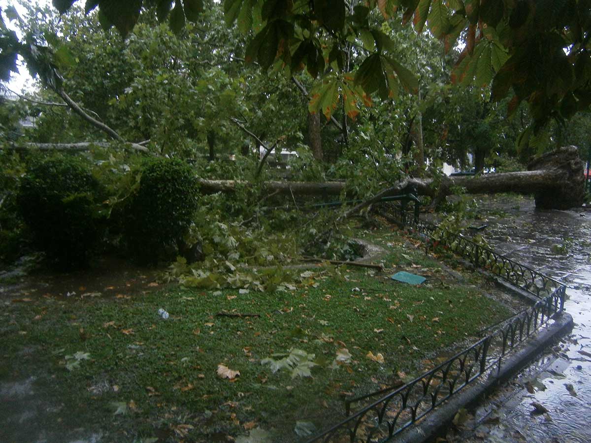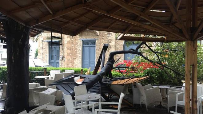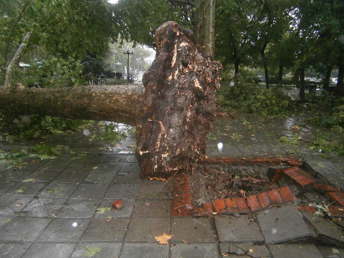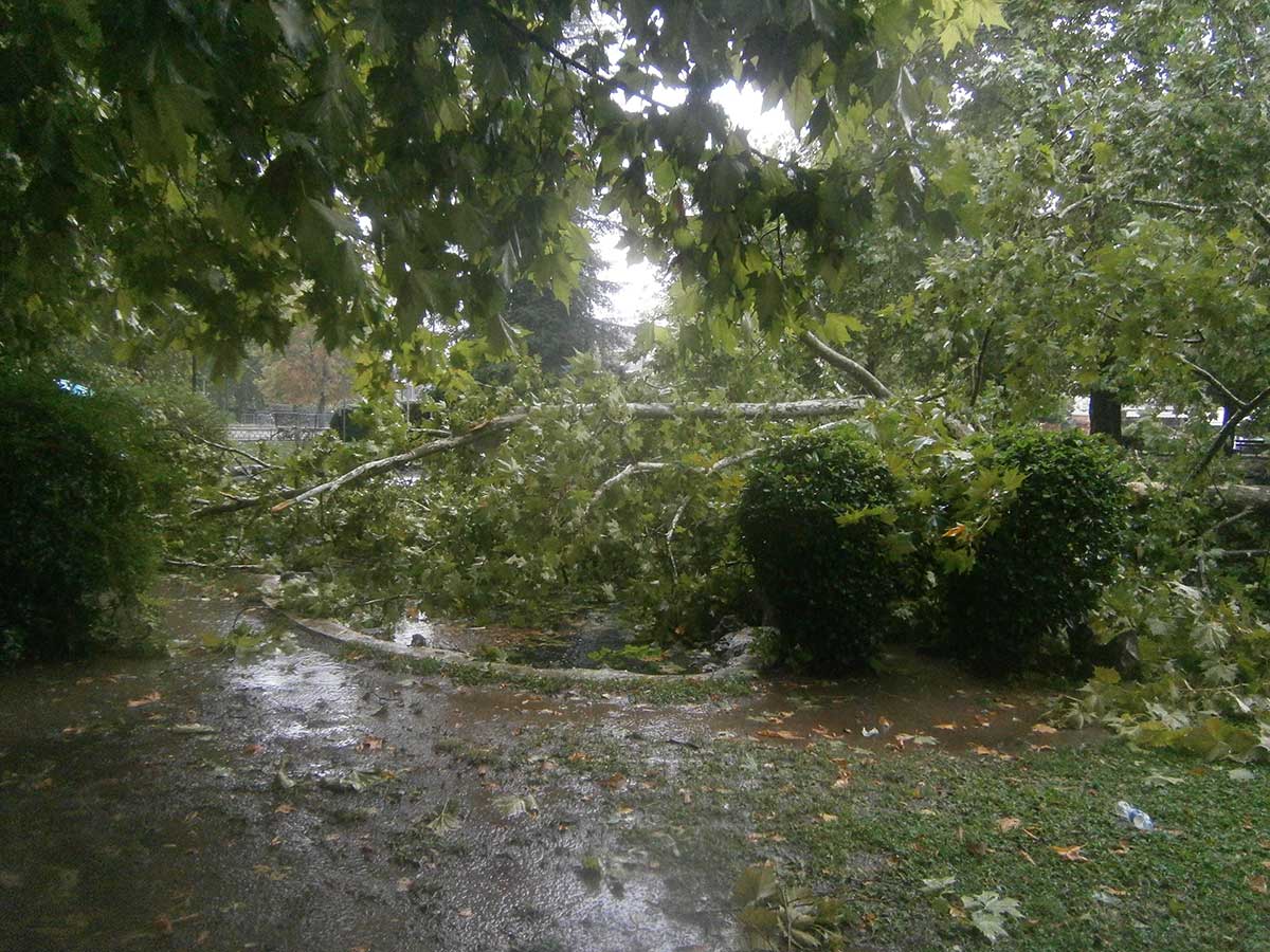 Ενδεικτικό της εντάσεως του καιρικού φαινομένου ήταν η πτώση ενός υπεραιωνόβιου πλατάνου που βρισκόταν στην κεντρική πλατεία της πόλης, καθώς και άλλων κλαδιών δέντρων.